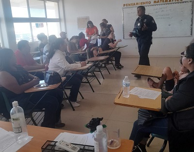 En esta ocasión el acercamiento fue con padres de familia de estudiantes de dicho plantel, ubicado en Del Conocimiento y Del Desierto, en Ciudad Universitaria, quienes les brindaron herramientas prácticas e información relevante para evitar ser víctimas de alguna situación de riesgo.
