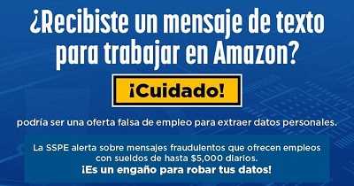 La SSPE recomendó no abrir enlaces sospechosos, no compartir información personal vía WhatsApp, verificar únicamente en el sitio oficial de Amazon y desconfiar de ofertas laborales sin entrevistas previas.