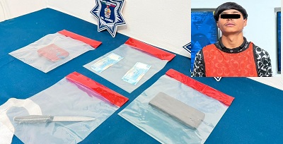 Al arribar al lugar, los oficiales contactaron a la víctima, quien refirió haber sido despojado de sus pertenencias mediante el uso de violencia y la amenaza con un arma blanca, por lo que con la descripción proporcionada por el afectado, los agentes localizaron minutos después a dos masculinos en el cruce de las calles Lince y Privada Lince, quienes coincidían con las características descritas.
