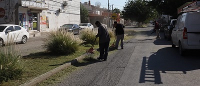 Personal de la Dirección de Parques y Jardines del Municipio llevó a cabo trabajos de mantenimiento general en el camellón central de la calle Rancho Malpaso, en el fraccionamiento Pradera Dorada.