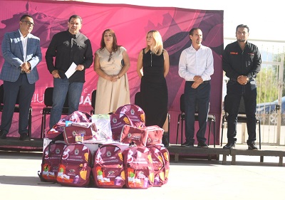 En total se distribuirán 130 mil mochilas y 48 mil loncheras en beneficio de 178 mil alumnos de 692 escuelas públicas de nivel preescolar, primaria y secundaria.