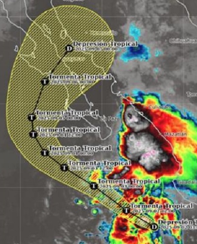 Sin embargo, está previsto que en los próximos días su dirección cambie y se torne directamente hacia tierra en Baja California Sur, llegando incluso a atravesar la península californiana y llegar como depresión tropical a las costas de Sonora, lo cual podría significar lluvias en la región noroeste del país.