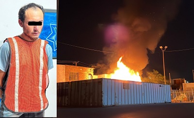 En el lugar, se percataron de un incendio de grandes dimensiones proveniente de un depósito metálico y junto al contenedor un sujeto quien al ver la presencia de los policías intentó emprender la huida, siendo detenido metros más adelante, identificándose como Irvin J. R. de 24 años, mismo que se encontraba en estado de intoxicación.