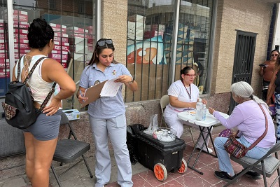 Empleados de la Dirección de Salud Municipal llevaron a cabo una brigada médica en el cruce de las calles Francisco Javier Mina y Miguel Ahumada, en la Zona Centro de la ciudad.