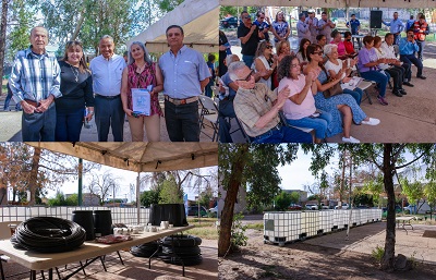 La J+ entregó diez bidones de mil litros, así como tubos, mangueras, codos y cajas de registro que servirán para el almacenamiento del agua tratada, la cual se utilizará para regar los árboles, mantener vivo el parque, pero, sobre todo, cuidar el agua potable al utilizar el agua tratada para el riego, así lo informó el director ejecutivo de la J+, Sergio Nevárez.