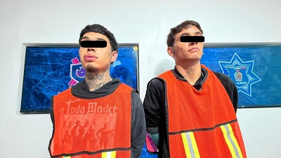 A 24 de septiembre de 2025.- Elementos de la Secretaría de Seguridad Pública Municipal, adscritos a la Estación de Policía del Distrito Sur, realizaron la detención de Brayan José G. R. y Sergio Yahir M. G., por su presunta participación en el delito de robo en grado de tentativa.