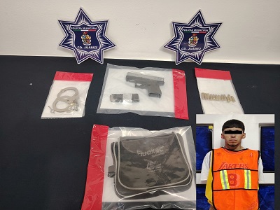 A 25 de septiembre de 2025-. Elementos de la Secretaría de Seguridad Pública Municipal, arrestaron a Miguel Ángel M. R., por su presunta responsabilidad en la comisión de delitos contra la ley federal de armas de fuego y explosivos, mismo que será investigado por causar lesiones a un hombre con proyectil de arma de fuego días atrás.