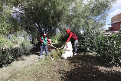 Agregó que “en la avenida De las Torres tenemos otro frente activo con corte de hierba, limpieza de camellón central y laterales, retiro de basura, tiliches y llantas. Asimismo, sobre la avenida Tecnológico, entre el puente El Trébol y el puente Rotario, estamos realizando labores de limpieza y mantenimiento, mientras que en la avenida Rancho Anapra avanzamos con el retiro de tierra de arrastre”.