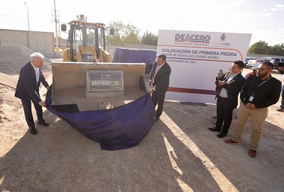 Este día, el Presidente Municipal, Cruz Pérez Cuéllar, acudió a la colocación de la primera piedra de la planta de reciclaje Deacero.