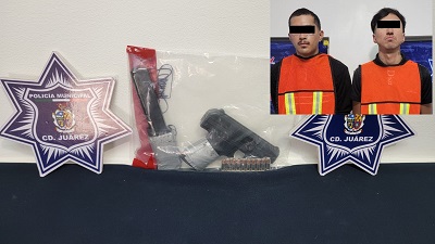 A 01 de octubre de 2025-. Elementos de la Secretaría de Seguridad Pública Municipal adscritos en la Estación de Policía del Distrito Oriente, capturaron a Emmanuel de la R. V. y Luis Omar C. R., por su presunta responsabilidad en la comisión de delitos contra la ley federal de armas de fuego y explosivos.