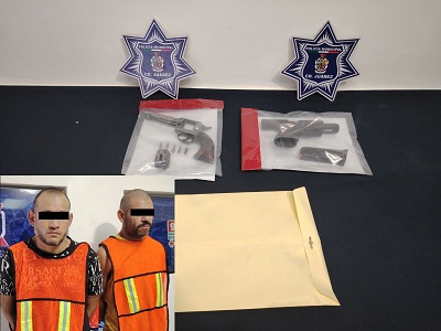 A 04 de octubre de 2025-. Elementos de la Secretaría de Seguridad Pública Municipal arrestaron a Víctor Manuel D. D. y José María Guadalupe B. T., por su presunta responsabilidad en la comisión del delito de lesiones y violación a la ley federal de armas de fuego y explosivos.