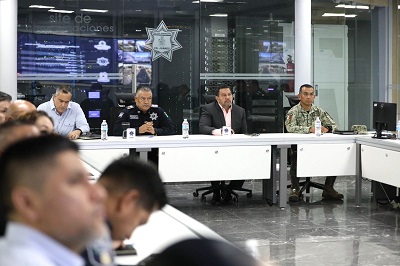 El Presidente Municipal, Cruz Pérez Cuéllar, encabezó este día la reunión de la Mesa de Coordinación para la Construcción de la Paz, donde se presentaron los resultados más recientes de las corporaciones y dependencias municipales, con la participación de autoridades estatales y federales.