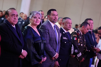 En su mensaje, el párroco exhortó a las y los integrantes de la corporación a desempeñar su labor con eficacia y compromiso, al tiempo que destacó que en el último año se ha registrado una disminución en los homicidios, lo cual refleja avances en materia de seguridad.
