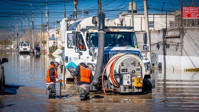 La Junta de Agua y Saneamiento de Juárez, realizó trabajos de mantenimiento en la red sanitaria del fraccionamiento Villa Residencial del Real, utilizando equipos especiales de inyección y succión tipo vactor.