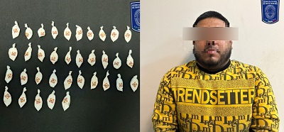 La detención en flagrancia, fue en la calle Prof. Dina Rico, en donde los agentes realizaron una revisión corporal a la mencionada persona, y encontraron entre sus pertenencias 35 envoltorios de plástico que contenían una sustancia con las características de la cocaína en polvo, con un peso de 38 gramos.