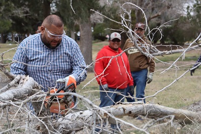 La práctica se realizó alrededor del monumento al Benemérito de Las Américas, en el Parque El Chamizal, donde los asistentes pusieron en marcha los conocimientos adquiridos, aplicando técnicas adecuadas para la poda responsable del arbolado urbano.
