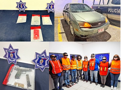 Previa lectura de derechos, Miguel Alberto M. M. de 43 años, José Francisco A. A. de 40 años, Luis Fernando A. A. de 28 años, Manuel Abraham V. G. de 32 años, Ana Cristina G. G. de 35 años, Berenice C. S. de 27 años, Luisa Alejandra A. H. de 38 años, Yulianna Gabriela C. de 18 años y un adolescente de 17 años, fueron puestos a disposición de la autoridad correspondiente por su presunta responsabilidad en la comisión de los delitos antes mencionados.
