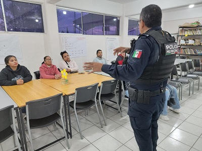 A 10 de febrero de 2026.- Elementos del Grupo 16, adscritos a la Dirección de Prevención Social de la Secretaría de Seguridad Pública Municipal, impartieron una plática preventiva dirigida a padres de familia de la Escuela Secundaria Federal 19, con el objetivo de concientizar sobre la “Omisión de Cuidados” y sus repercusiones en el desarrollo integral de los estudiantes.