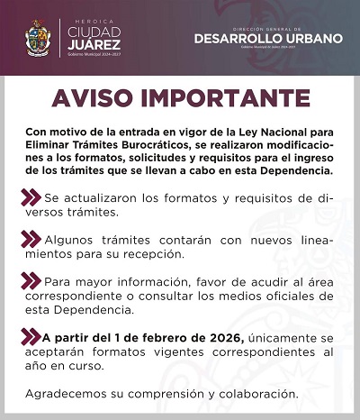 Con el objetivo de brindar un servicio más ágil y ordenado a la ciudadanía, la Dirección General de Desarrollo Urbano reiteró que a partir del 1 de febrero únicamente se aceptan formatos actualizados para la realización de trámites.