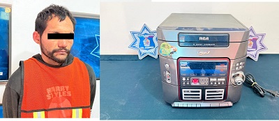 Al llegar al lugar del reporte observaron a un masculino que reunía la descripción aportada en la denuncia, el cual salía del domicilio con un equipo de sonido, mismo que al ver la presencia policial intentó emprender la huida siendo alcanzado de manera inmediata.