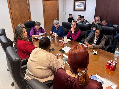 La regidora y coordinadora de la Comisión, Sandra García Ramos, así como sus compañeras Mireya Porras Armendáriz y Dina Salgado Sotelo, se reunieron con personal del Instituto Municipal del Deporte, el Instituto para la Cultura del Municipio de Juárez, de la Dirección General de Desarrollo Económico, del Sistema para el Desarrollo Integral de la Familia del Municipio, de la Dirección de Atención y Bienestar Animal y el Sistema Municipal de Protección Integral para Niñas, Niños y Adolescentes.