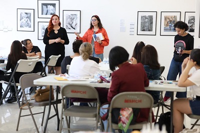 Como parte del proceso, se realizó también un ejercicio literario coordinado por Itzel López Olvera, directora del Museo de Arqueología e Historia de El Chamizal (MAHCH), a partir de un poema de Alejandra Pizarnik. Las participantes apropiaron el texto desde su experiencia personal y desarrollaron escritos propios que serán incorporados a las obras finales del taller.