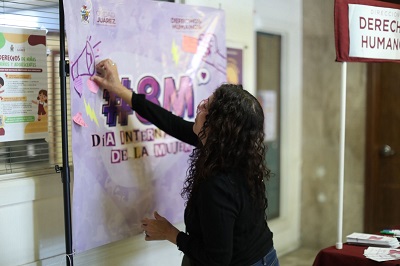 En el marco del mes de la mujer, personal de la Dirección de Derechos Humanos, llevó a cabo la colocación de posters informativos en distintas áreas de la Unidad Administrativa “Lic. Benito Juárez” (presidencia municipal), con el objetivo de sensibilizar a los y las servidoras públicas, así como a la ciudadanía en general, sobre la importancia de esta fecha.