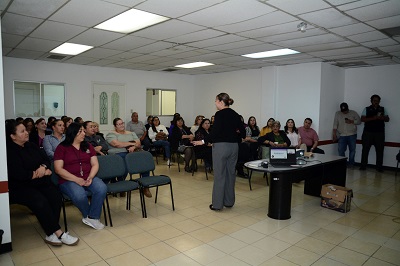 La plática fue ofrecida por Eliana Treviño Horta, coordinadora del programa de protección a mujeres víctimas de violencia por razones de género de dicha organización, quien abordó diversos temas relacionados con la prevención y reconocimiento de la violencia.