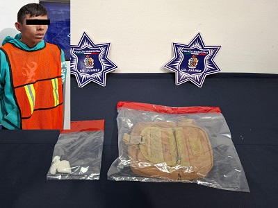 A 09 de marzo de 2026.- Elementos de la Secretaría de Seguridad Pública Municipal, capturaron a Paris Omar A. R., por su presunta responsabilidad en la comisión de delitos contra la salud, así mismo, será investigado por el delito de robo a casa comercial.