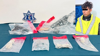 La detención se registró luego de que agentes municipales que realizaban labores de prevención y vigilancia en la colonia Parajes de San Isidro, atendieron un llamado recibido al número de emergencia 911, donde reportaban a sujetos armados en el cruce de las calles Volcán Nevado y Soneto 156.