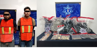 Policías Municipales detienen a dos sujetos en posesion de dos armas de fuego, varios cartuchos y equipo táctico