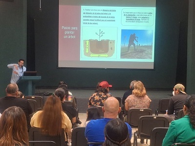 Durante el taller también se recomendó cubrir el suelo alrededor del árbol con material triturado, corteza o grava, lo cual ayuda a conservar la humedad, mejorar la infiltración del agua y reducir el crecimiento de maleza que compite con el árbol por nutrientes.