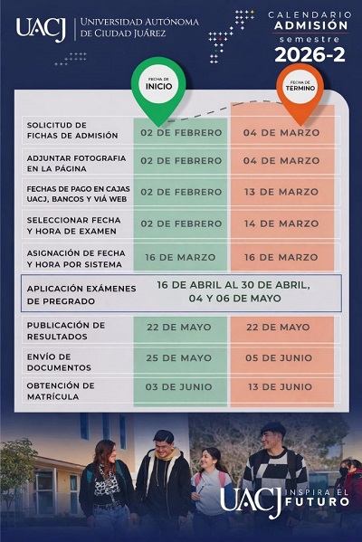 Para mayores informes, se encuentra a disposición el correo electrónico: admision@uacj.mx