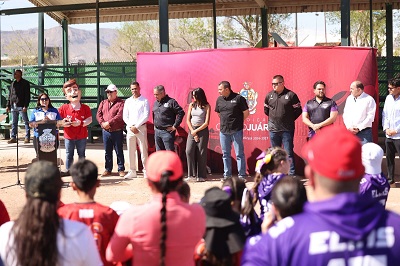 El Presidente Municipal, Cruz Pérez Cuéllar, encabezó el arranque oficial del Torneo Duna Bowl 2026, que por primera ocasión se realiza en esta frontera, dando la bienvenida a equipos de todo el estado de Chihuahua.